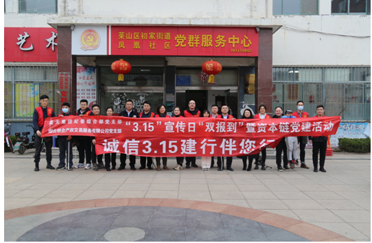 為進一步普及社區(qū)群眾消費者權(quán)益知識,增強日常消費、網(wǎng)絡(luò)消費、金融消費的維權(quán)意識。3月15日下午,藍天集團紀(jì)委綜合部黨支部和煙臺聯(lián)合產(chǎn)權(quán)交易服務(wù)有限公司黨支部邀請聯(lián)合產(chǎn)權(quán)“資本鏈”黨總支聯(lián)盟單位,以紅色黨建為引領(lǐng),以消費者權(quán)益日為契機,在初家街道鳳凰社區(qū)開展“3.15”宣傳日雙報到暨資本鏈黨建活動。集團黨委委員、聯(lián)合產(chǎn)權(quán)黨支部書記、董事長初志杰同志,集團黨委委員、紀(jì)委書記湯志厚同志,以普通黨員身份參加。