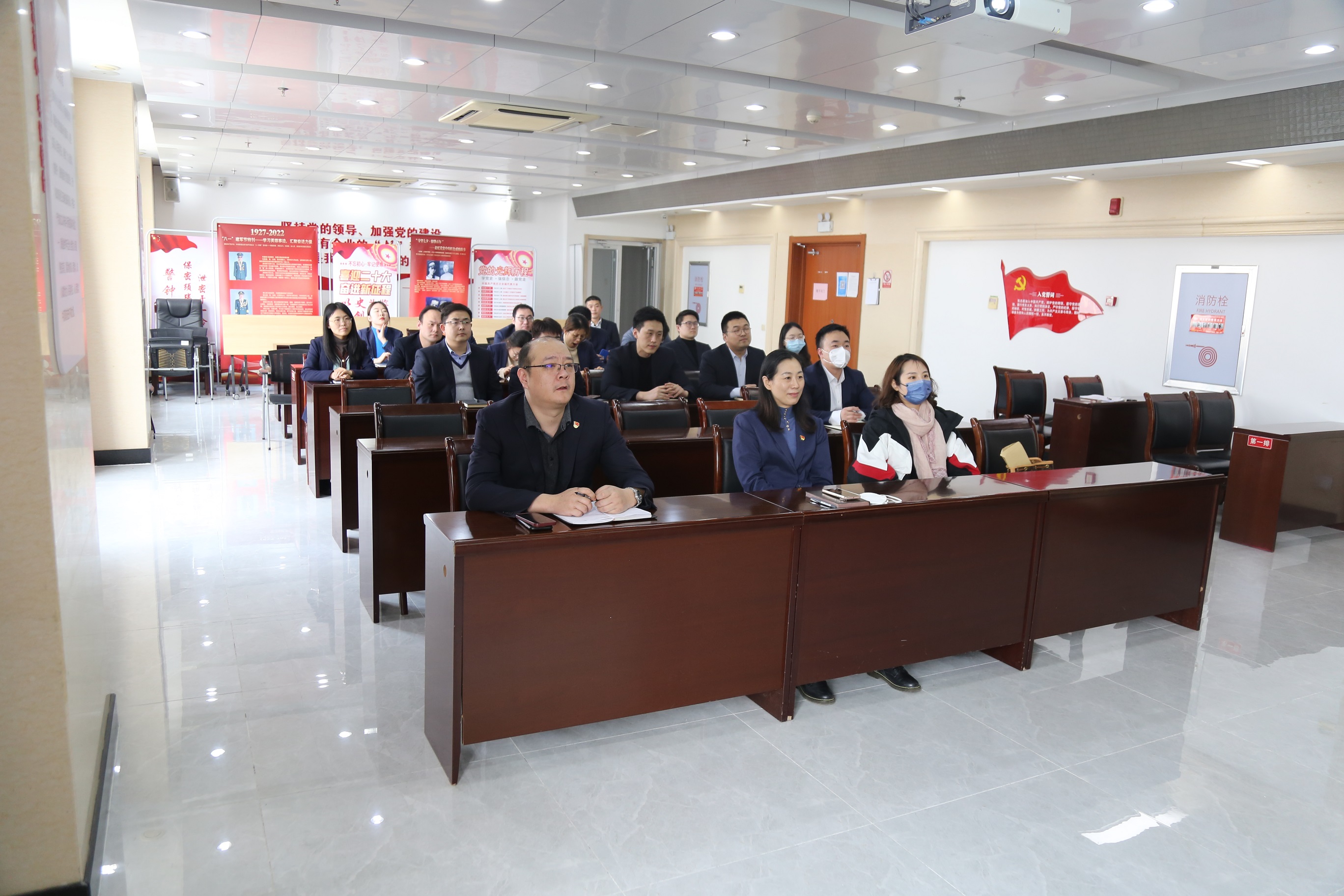 2月10日下午,聯(lián)合產(chǎn)權黨支部組織全體干部職工集中觀看《藍天映旗紅》電視片,集團黨群部派人列席指導會議。