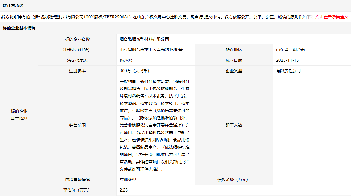 煙臺弘順新型材料有限公司100%股權