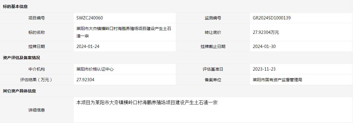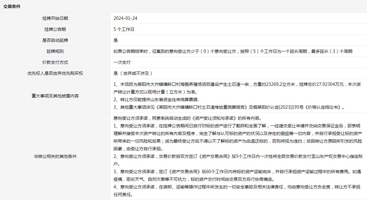 海陽市辛安鎮(zhèn)卓格莊村CX項目平整土地產生部分渣土一宗(3號標的)交易公告