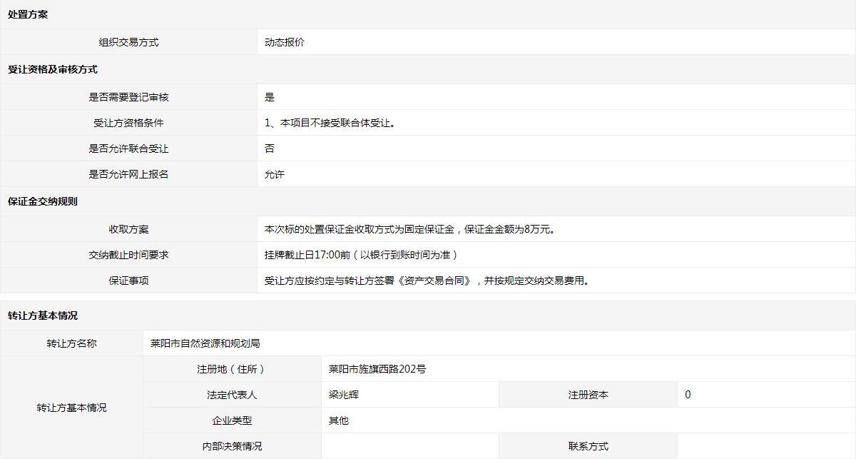 轉讓方:萊陽市自然資源和規(guī)劃局