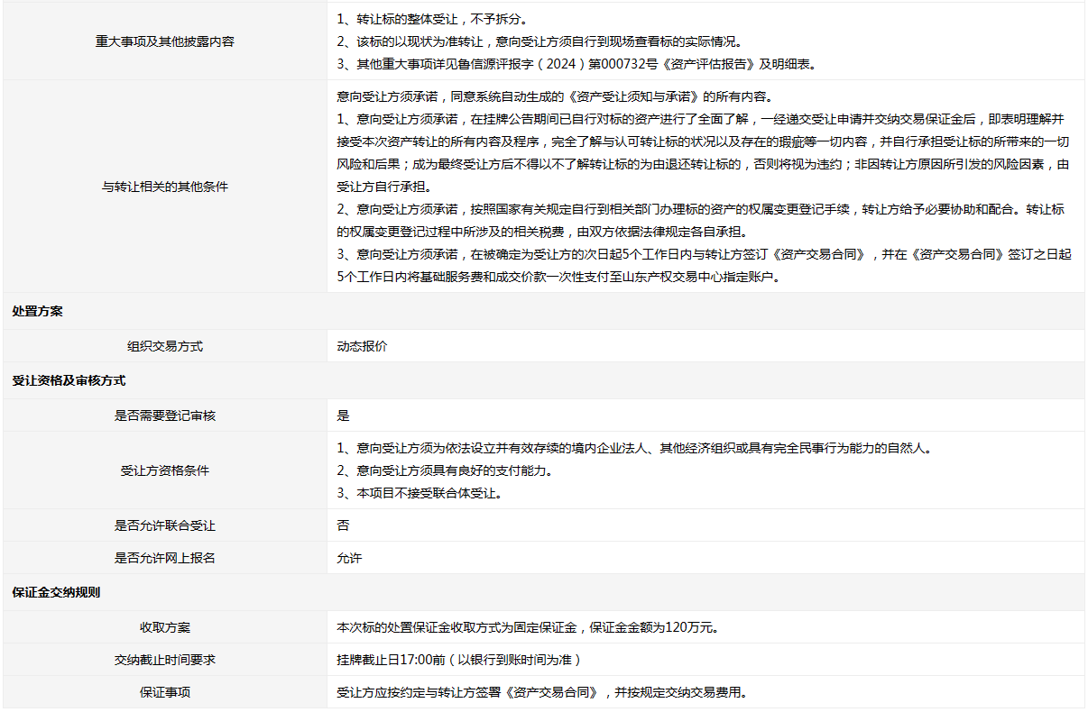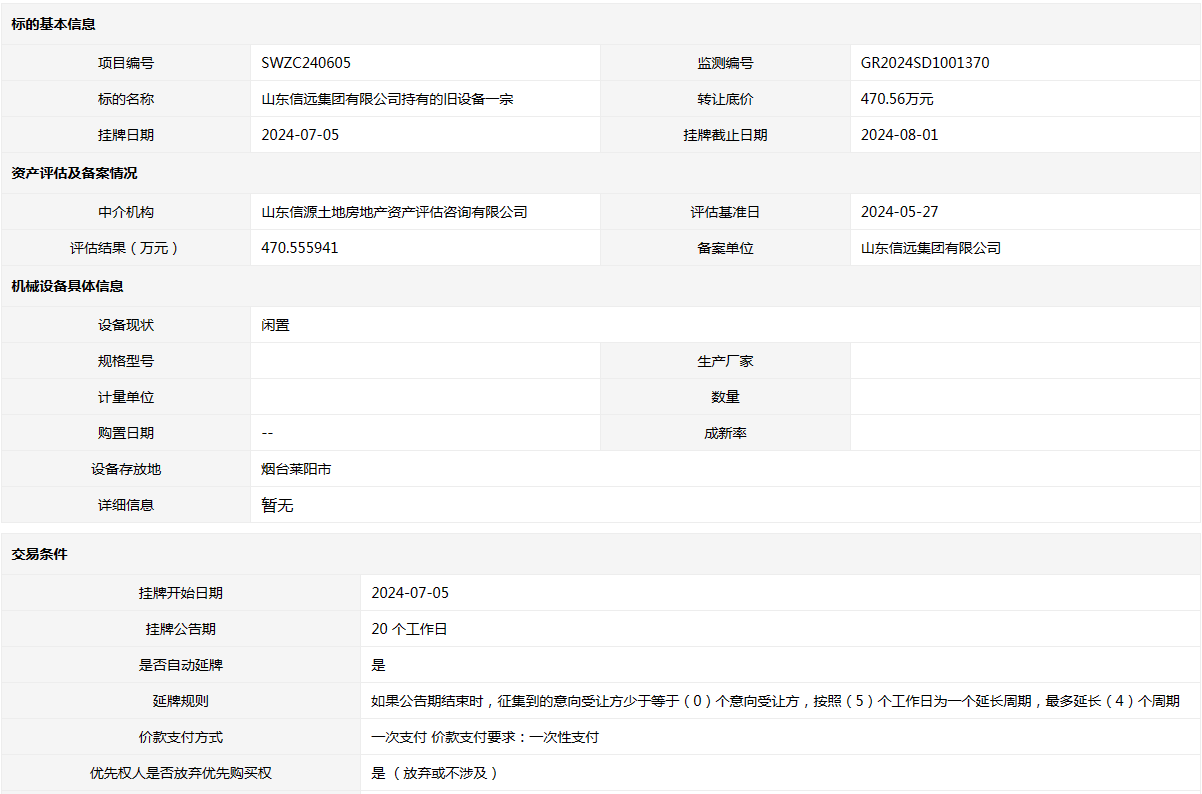 山東信遠(yuǎn)集團(tuán)有限公司持有的舊設(shè)備一宗