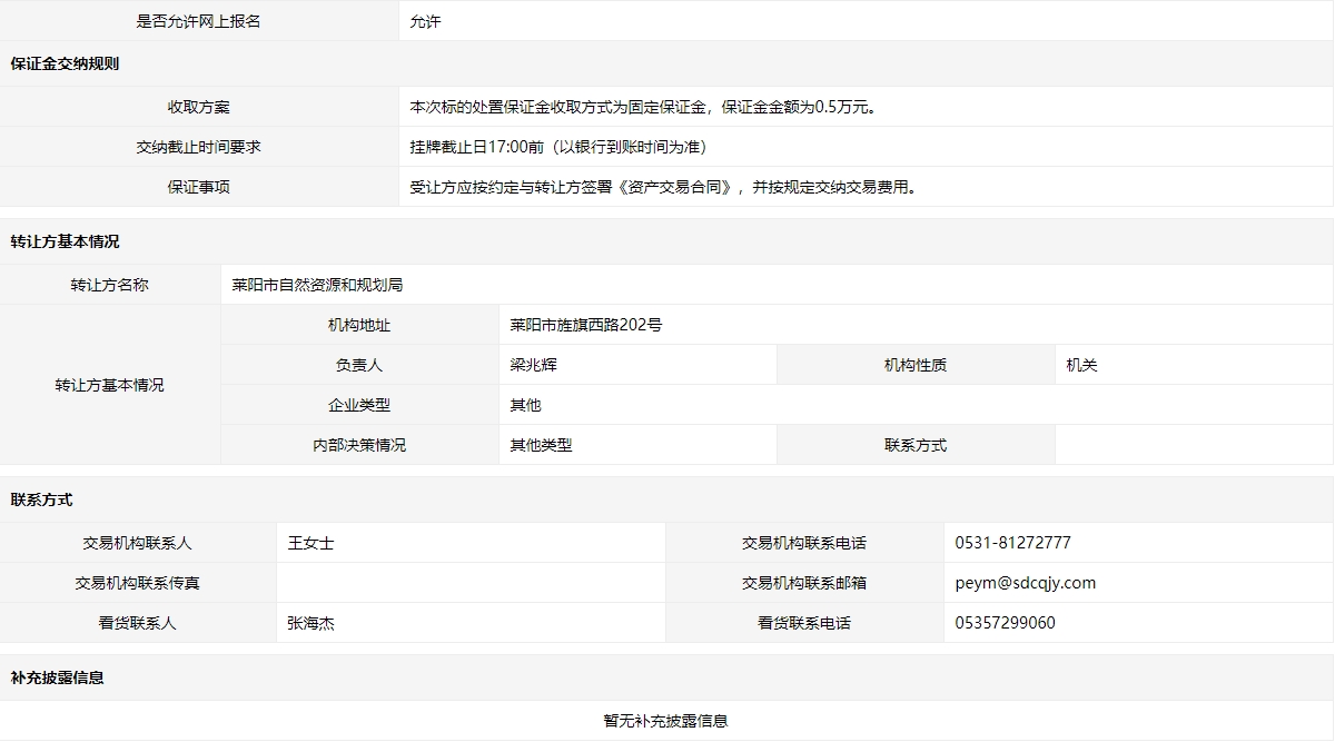 轉(zhuǎn)讓方:萊陽(yáng)市自然資源和規(guī)劃局