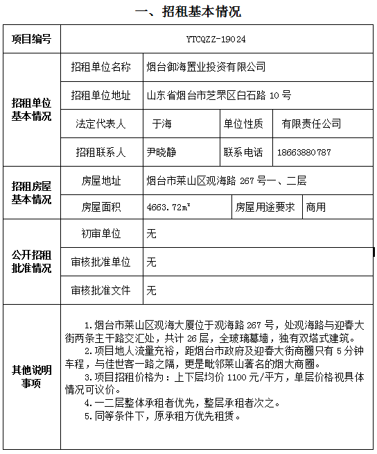 萊山區(qū)觀海大廈一二層招租項目