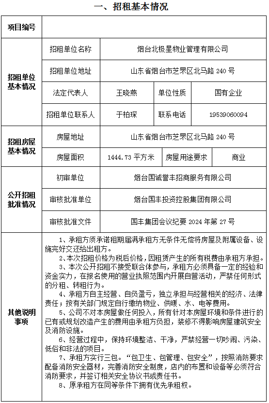 煙臺(tái)市南大街267號(hào)一樓東側(cè)門頭房招租公告