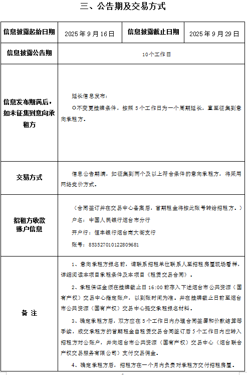 煙臺市芝罘區(qū)機場路223號房地產(chǎn)招租公告